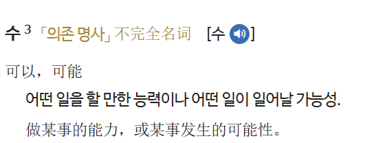 [例句] ?? ??? ??? ?? ?? ?? ? ???. 明天公司聚餐,所以不能一起吃飯。(“?”在語境中解釋為“可能性”)