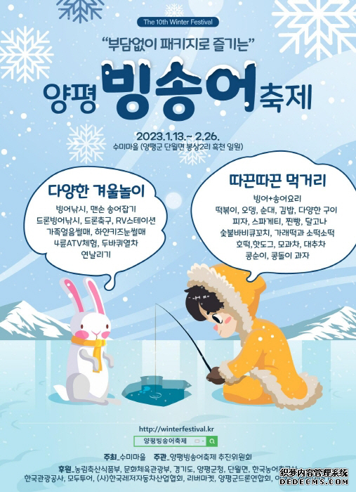 "第10屆楊平冰鱒魚慶典"將在以365天慶典聞名的秀美村舉行45天,可以根據自己的喜好享受利用冰雪的活動。