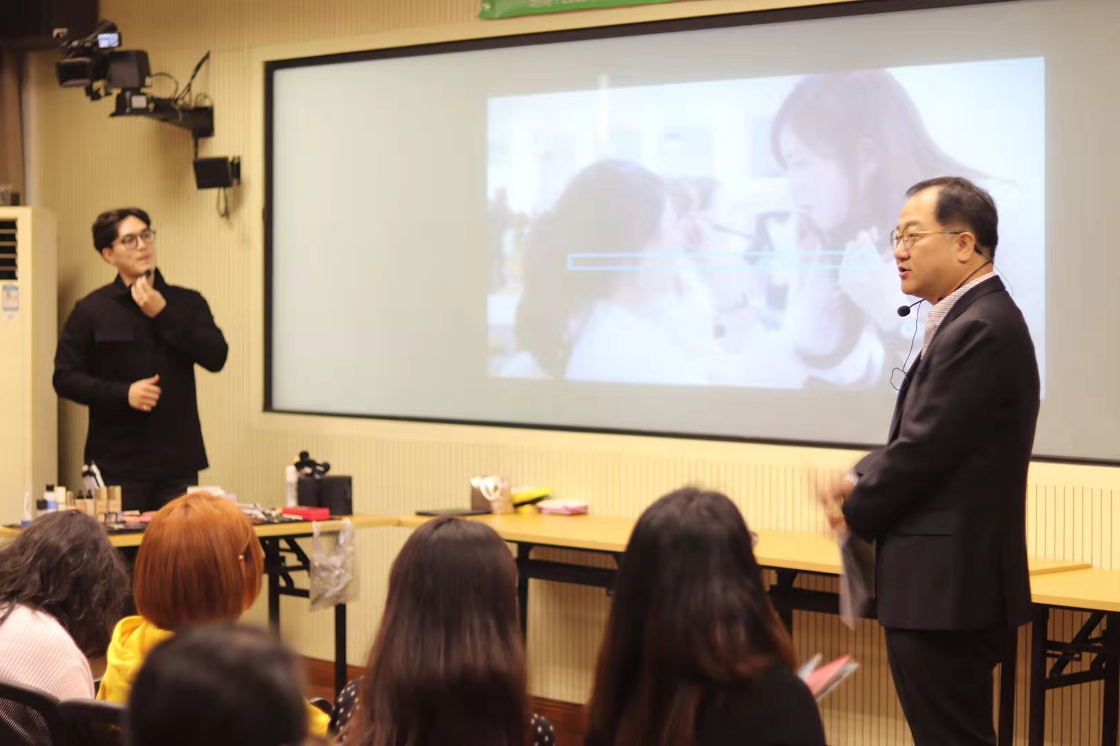 金老師對韓國和中國關于美妝的特點進行了講解。以中韓著名的女星妝容為例與現場同學一起討論了中韓妝容的差異。